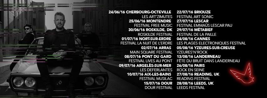 > Festival Lives Au Pont, Pont-du-Gard (8 juillet) ; Les Déferlantes, Argelès-sur-Mer (9 juillet) ; Festival Musilac, Aix-Les-Bains (10 juillet) ; Les Plages Electroniques, Cannes (4 août)